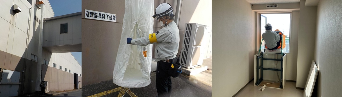 先月は避難器具(垂直式救助袋)を降ろして点検を行いました。